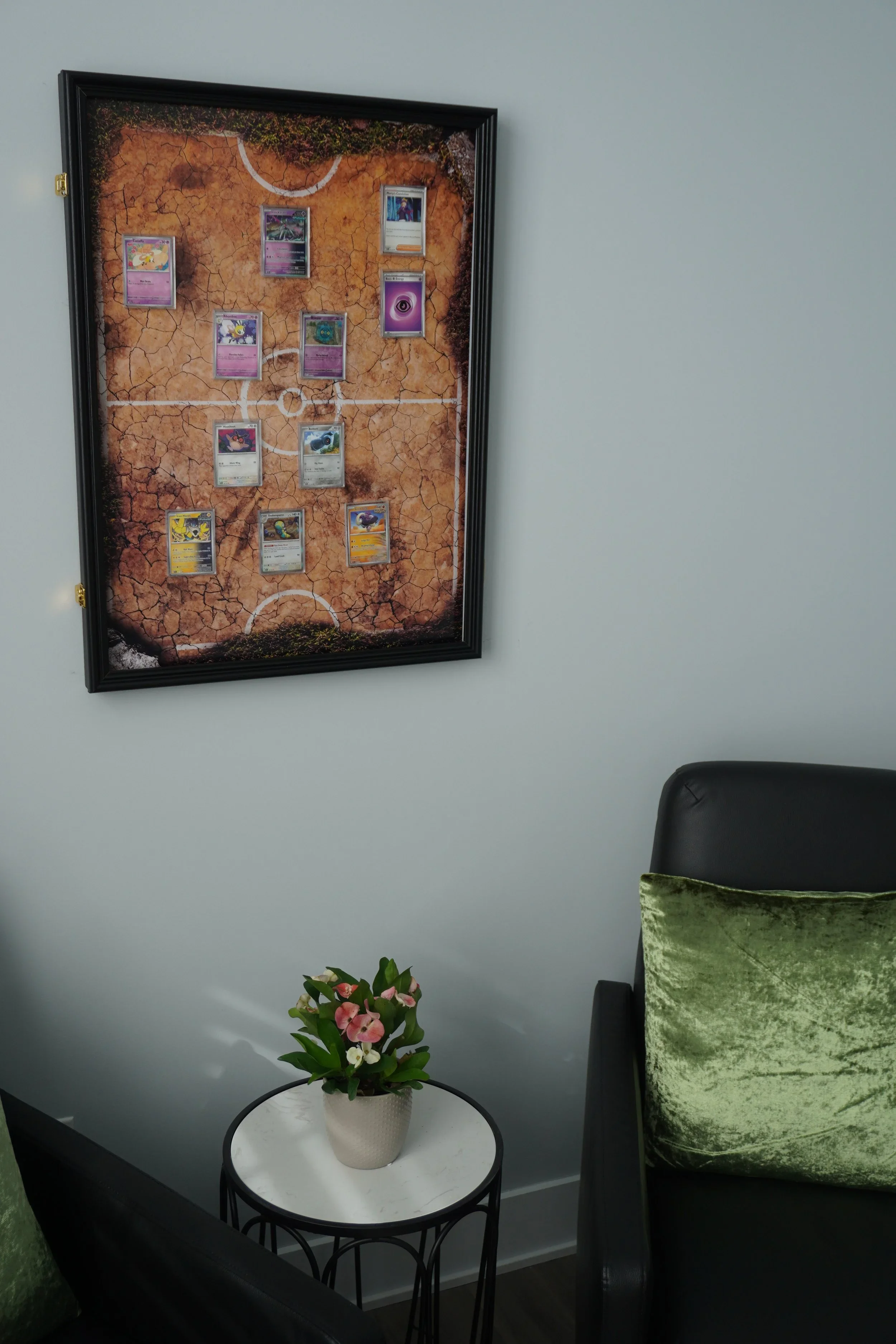 At Remarkable Artworks, we believe your cards deserve more than just a frame, they deserve a setting. Our displays use thematic backgrounds that match the cards themselves: